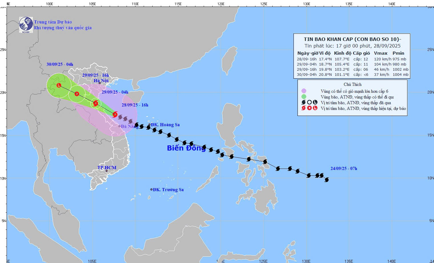 Hướng đi của bão BUALOI( bão số 10) trong bản tin mới nhất hôm nay. Ảnh: NCHMF
