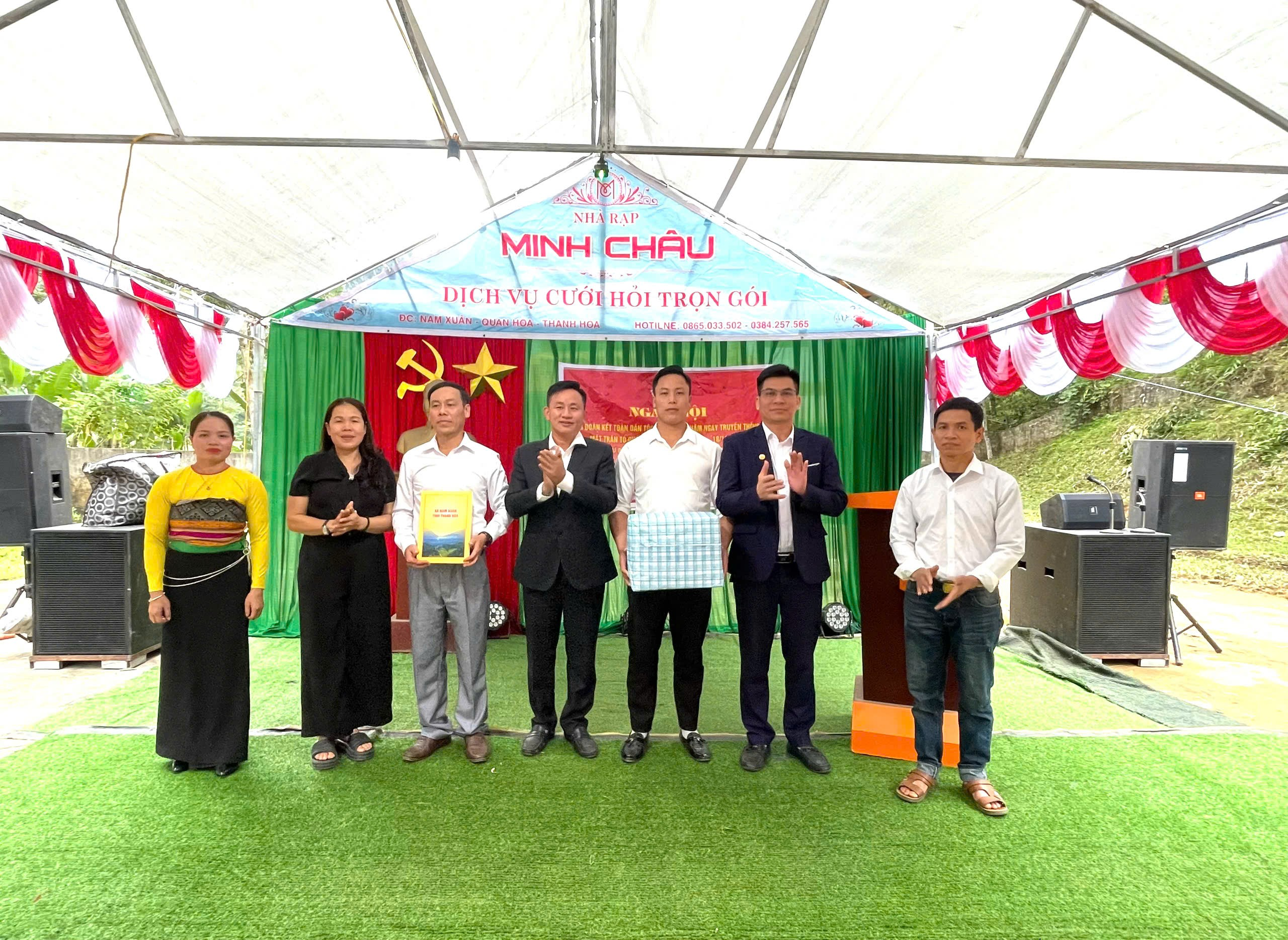 Lãnh đạo xã tặng quà cho bản và 1 số hộ gia đình khó khăn.